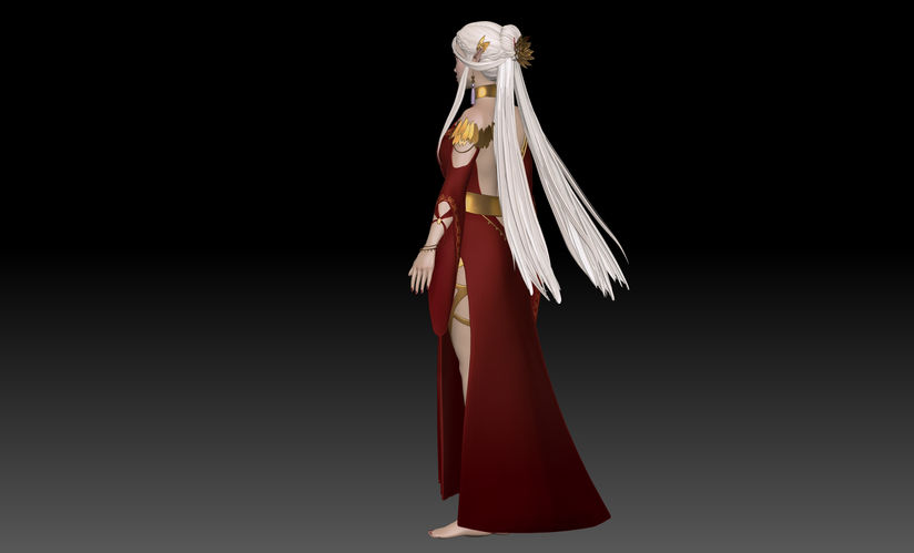 This is the concept being taken into 3D. The sculpt and textures were done in Zbrush. The next step is to retopologize her and take her into Substance Painter.
